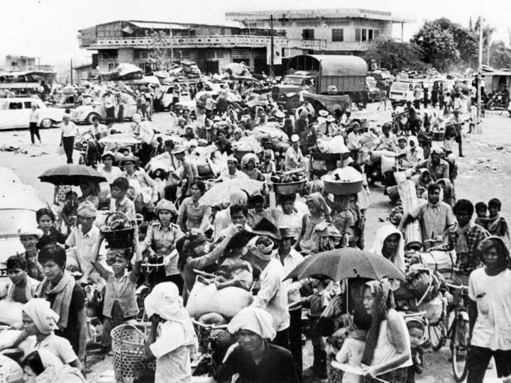 When he was in his twenties, Cambodia was a fractious country fueled by political dissonance and discrimination against ethnic minorities. My dad was attending Phnom Pehn University when the capital of Cambodia fell to the Khmer Rouge, a rural communist guerrilla movement, in April 1975. The Khmer Rouge evacuated the entire city under the guise of an impending American bombing raid. Among 2.5 million people, he was herded out of the city and into the countryside. Emptying the cities of Cambodia and sending the urban population to work on collective farms was part of the regime’s belief in a self-sufficient agrarian socialist society, in which they preached that “planting rice and digging holes would make the country great again,” described my dad. Along the way, 20,000 people died on the march. It would take over 3 weeks until my dad would make it to his hometown, which was now controlled by the Khmer Rouge.