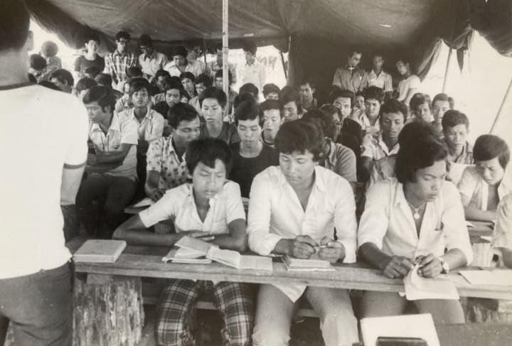 Leave now or be killed. This was a warning from an insider to my dad’s oldest brother and classmate, for the two were associated with the former military. My dad fled with them in the night, and at that moment, he knew that there was no turning back. Carrying only a backpack with rice, a few military rations, and a small vial of poison made from the crushed seeds of a toxic fruit—as a last option for if they were caught or when the voyage would become too much—their goal was to flee northeast to the border of Thailand. It was a treacherous journey that was mostly done once the sun was down, for fear of being spotted and captured by the Khmer Rouge.