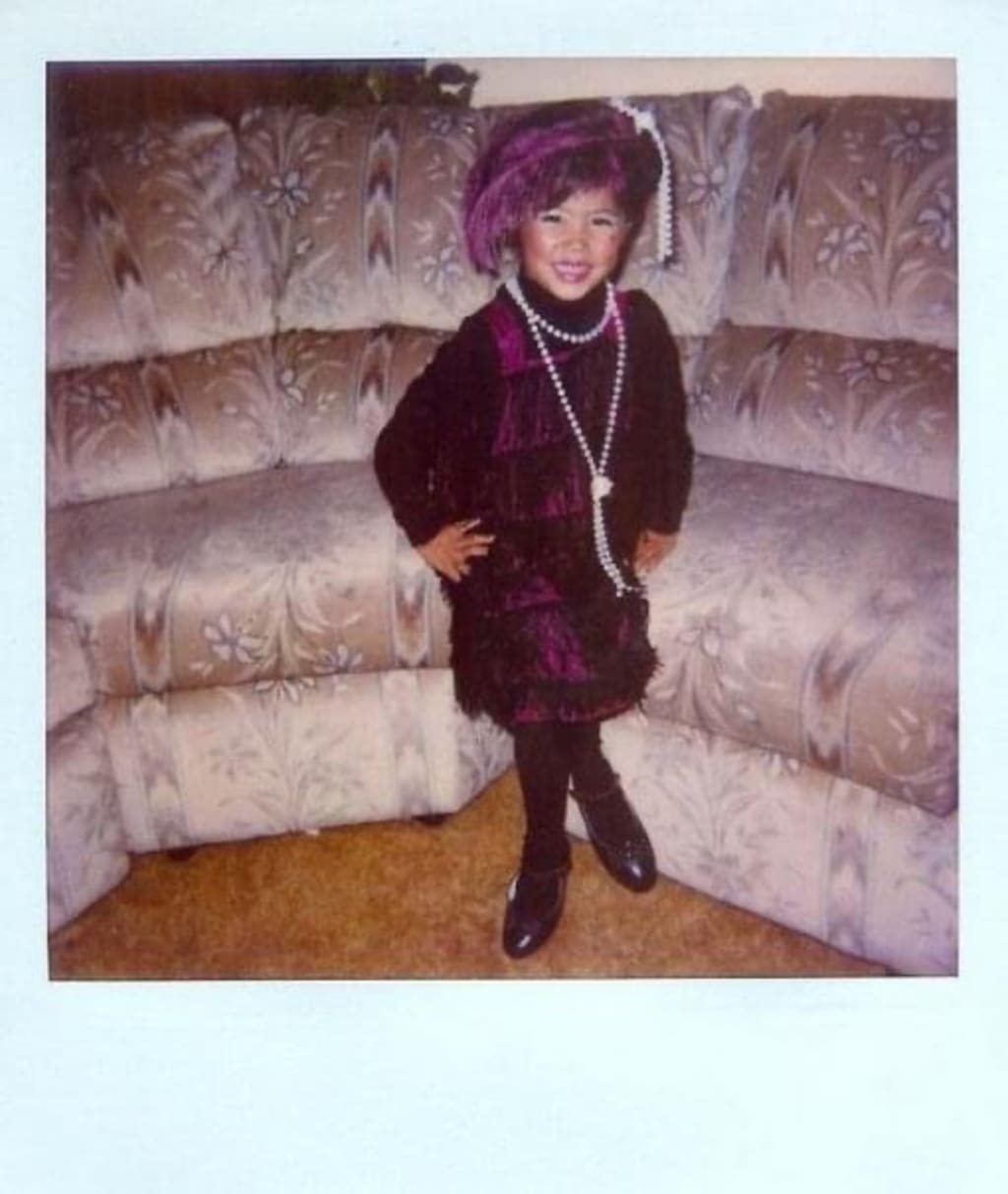 “Now, when you get to school, remember...” she paused as she drew a mole on my face, which oddly enough would become a reality in my later years, “I put a lot of work into this outfit. A true flapper would never let anyone outshine her. Do you know what that means?”