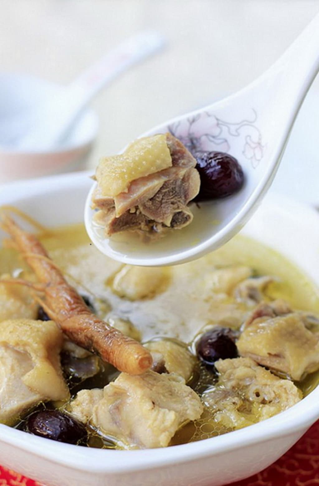 Braised chicken with mountain ginseng and red dates