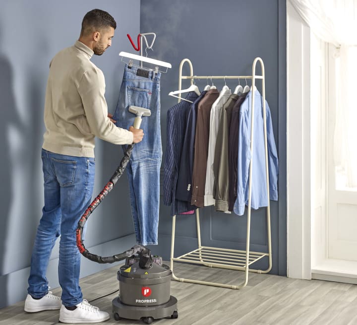 In the case of the handheld, check if you can use the steamer in the horizontal position. This is important when it comes to steaming beds and bed linen, even sofas. Some steamers are designed to allow horizontal steaming without dripping and blocking. The Propress MINI is a good example of this feature.