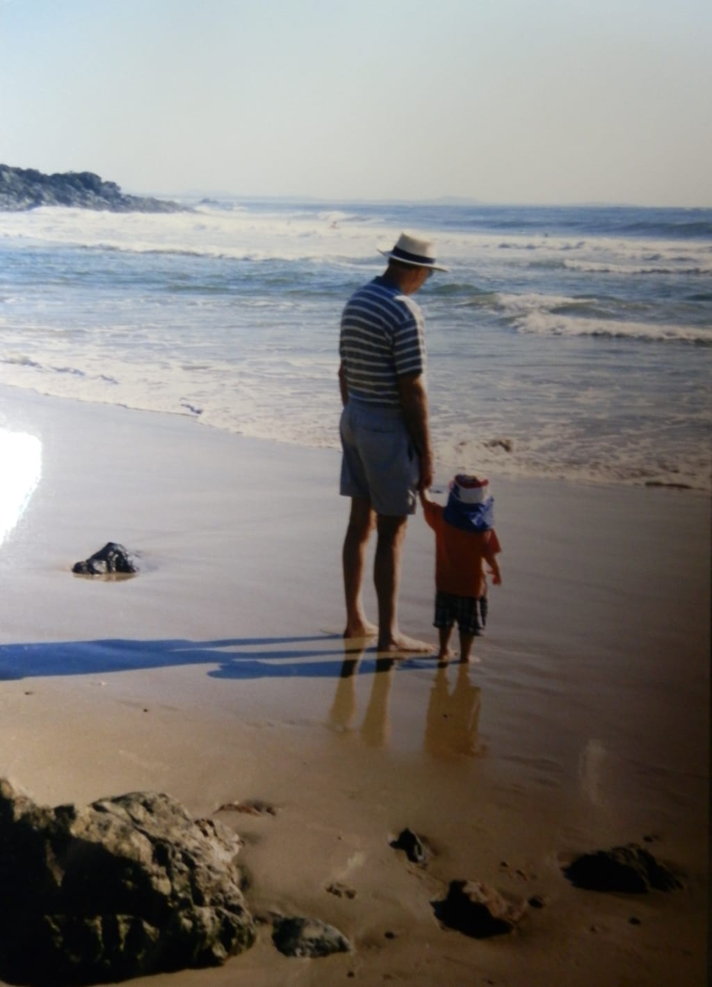 As his fingers curl around my hand, I’m suddenly back in Palm Beach. I can feel the sun burning my skin, the water lapping at my legs, my siblings laughing around me and my Daddy looking at me. ‘You ready Lisy Lou?’ He smiles at me and I grip his hand tighter. A big wave breaks and rumbles towards us. ‘Here it comes’, he says and I gasp as the wave forces itself around me, threatening to topple me over, but my Daddy holds me safe. He turns to me, ‘That was a big one’ he smiles. Dad’s hands were so strong and brown. I felt so safe when I was in them. They twitch now, a senseless pattern, a rhythm of a life no longer really with us. I look at him, and his eyes catch mine. I can see light in them, ‘I love you Dad’ and he smiles. ‘Thank you’ he replies.