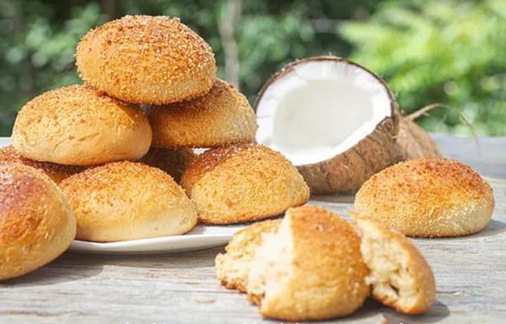 Coconut bread is usually prepared using local ingredients available on the island, such as fresh coconut and coconut milk. Coconuts are abundant in the region, making it a fundamental ingredient in the local diet. The combination of wheat flour, shredded coconut, coconut milk, sugar and other local ingredients results in a fragrant and delicious bread that has been a staple food on the island for many generations.