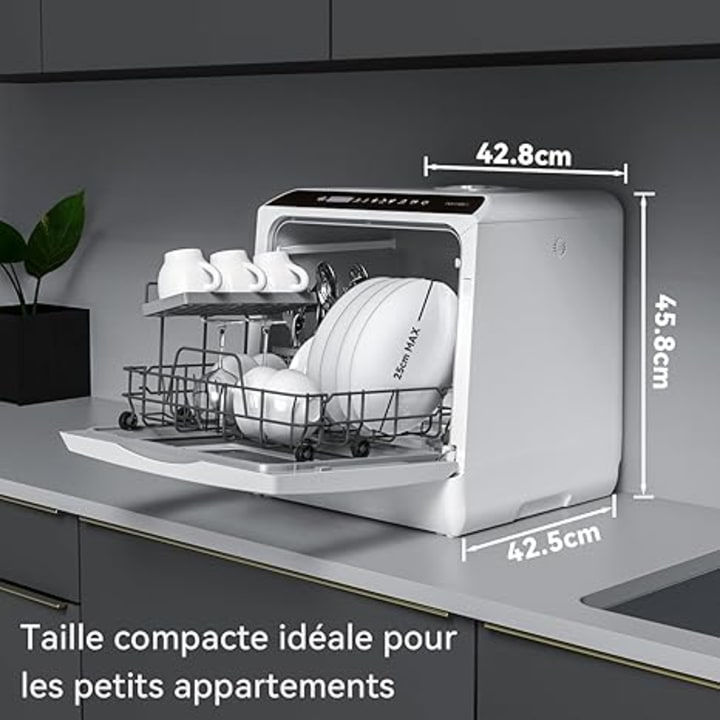 In elegant white, this model fits discreetly into any environment while offering maximum functionality. The Hermitlux Mini Tabletop Dishwasher stands out for its combination of efficiency, mobility, and simplicity, perfectly meeting the needs of people living in small spaces or looking for a portable solution for their outdoor adventures.