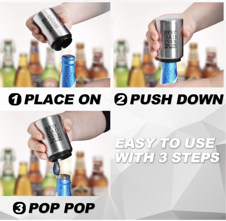 In addition to the beer glass, this gift set also comes with a unique beer bottle opener that reads "Best Dad Ever You Are My Hero." This speed opener is easy to use and brings convenience to your dad's beer opening needs. With a simple push down, the cap pops off, making it easy for your dad to enjoy his favorite drink safely.