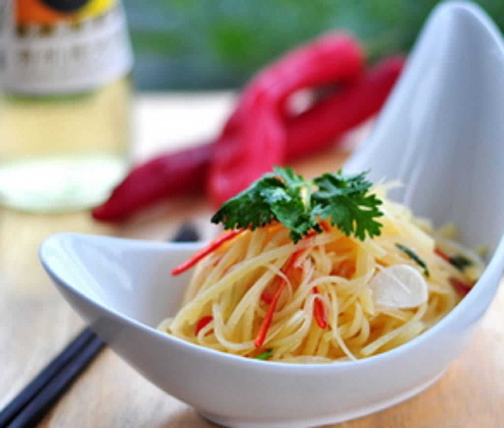 The way to slide potato shreds in vinegar