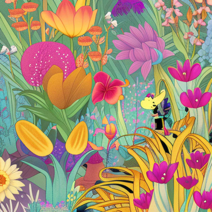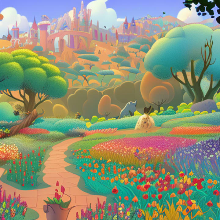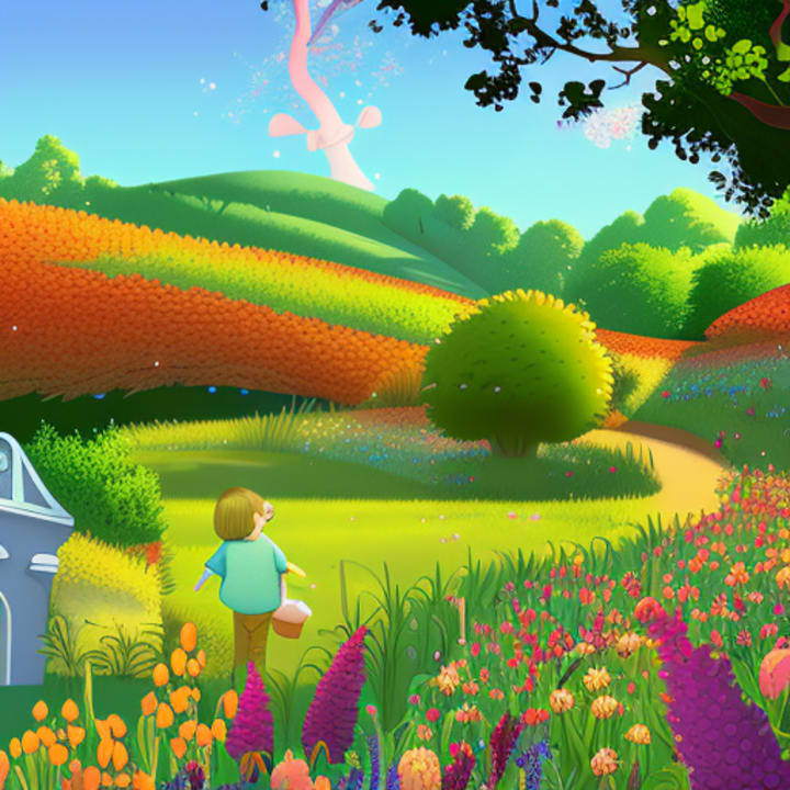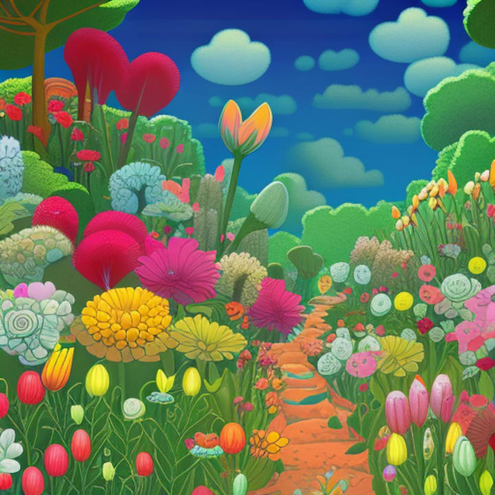 Once upon a time, in a faraway land, there was a beautiful garden. In this garden, there were flowers of all colors and sizes. There were red roses, yellow daisies, purple violets, and blue forget-me-nots. Each flower was unique and beautiful in its own way.