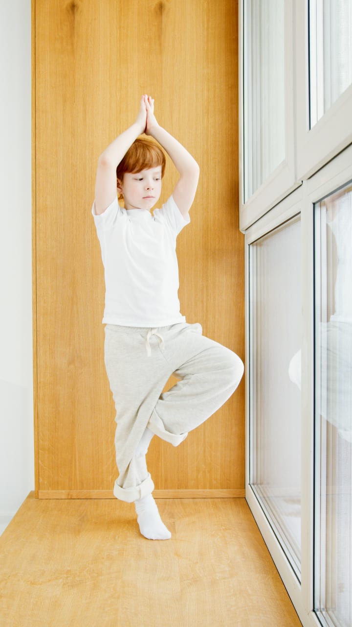 Sun Salutation (Surya Namaskar): The Sun Salutation is a flowing sequence of poses that warm up the body and energize the mind. Simplified versions with child-friendly names and movements can be introduced, such as "Rising Sun," "Stretching Cat," or "Tree Pose." This exercise enhances flexibility, coordination, and body awareness.