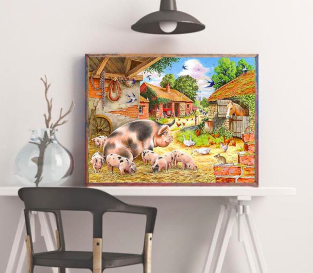 As I watched, my mind drifted to think of my favorite of her paintings, one she had done as a study in preparation for a scene she was commissioned to paint. It was a picture of pigs in a farmyard, and the study was only half finished, so that the piglets in it were colored and the background was not. A few months before, I had seen it and told her I liked it, so she gave it to me, and it now hung on my wall at home.