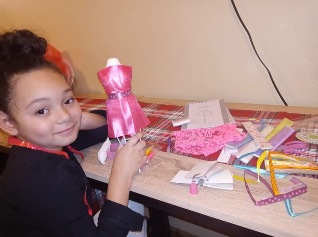 Want to know how to create your own happiness at three o' clock in the morning? All you have to do is have a beautiful, outgoing, and fashion obsessed daughter that wakes up in the middle of the night to create outfits for her dolls! Yep! That's right! My beautiful 7 year old daughter, Miracle, loves to create all different types of outfits... especially when she is supposed to be in bed. "Mommy, wanna see my new creation?" she always says when I walk into the kitchen. Of course I would like to say, "Miracle! Get to bed.. NOW!", but knowing how passionate she is about making fashion just makes me smile and embrace all that she is doing in that moment and makes me want to join in. Our favorite way to create her masterpieces is by turning it into a game; I give her a theme or event to create an outfit for, and she gets to designing and cutting her fabric. "Mommy! Where's my scissors?" is most definitely something you will hear while visiting our house. For some reason, my daughter's most prize possession, her scissors, are the ONE thing that ALWAYS ends up missing. Perhaps it is because she takes them everywhere: to her aunts, her mimi's house, and even in our back yard. Unlike most children who would enjoy to go to a park, a cool arcade, or some kid friendly place, Miracle would rather take a trip to Jo Ann Fabrics or another fabric/craft store to get new supplies for her fashion creations. Miracle's personality is definitely like no other. When she was about to start preschool, we made the decision to send her to a private school; the same school that both of her oldest cousins attended. But at only age 4, Miracle started to cry at the thought of it and when I asked her why she replied, " I will have to wear the same ugly outfit every day momma and I want to be able to pick out my hair bow to make sure it matches my outfit every day." At that very moment, I made a quick decision to change her to public schooling for that upcoming year. The smile that showed upon her face while shopping for school clothing that year will be a memory that I will never forget. Every morning she would wake up and be so excited to pick out her outfit and hair ties and bows to match. When we would go into a store, I started to notice that she would touch a lot of the clothing we would walk by to see what the felt like. She would make comments like, "Wow! That feels so soft! I bet my doll would like to have an outfit like that!" and I would reply, "Well you can always make an outfit for your doll." After about a week or so, I woke up in the middle of the night to a sound that was coming from the kitchen. Miracle had her scissors in her hand and had cut up half of her own clothing and was making outfits for her dolls. I'm sure that at that time the look on my face was priceless, but I had remembered what I said a few days prior and decided to see what the new doll's dresses looked like. To my surprise, they were beyond beautiful and I decided to join in on the fun! From that point on, it has been a new way to create our own happiness. I am so blessed to be Miracle (the designer's) mommy!