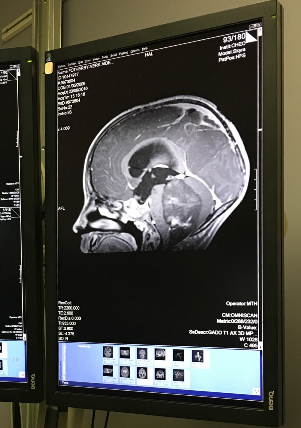 Back in the exam room the doctor comes in. The first thing I think is she is very pretty, looks like a TV doctor. She tells me they found something, I don't remember now if she actually said tumour in front of Aiden or just "something" and it's a blur... "Are you joken?" I ask, no sorry she is not. It's a blur... where is my husband? Get him to come here... Nero team is going to talk to us he may need surgery right away. I call josh, tell him nothing, not to panick, just come to CHEO. I call my brother to pick up Declan and Lynk and tell dad. My dad is on his way. A blur... Doctor comes back in, "how far is your husband?" I call him again, he is 8 mins. A blur... they have a Child Specialist with Aiden watching a movie asking what stuff he likes." Josh get there, panicky but I remember being surprised he was keeping it together. He meet Dr NZho for the first time. A little black doctor, I can't guess his age not old but not young. He is the neosurgeron. He explains they found a "bad guy" on his small brain and that is what has been causing his "wobbliness" and headaches. We sit in front of a monitor but before he shows us the MRI photos he shows us images of a good brain from a text book so we have reference. He explain different functions of he brain. Then he shows us the MRI. First thing I say "that looks big!" He says it is relative, I know better. A blur... he takes us through a sheet of all possible outcomes of surgery, from loss of life, paralysis, to headaches. A blur... he is getting his team together if he can't get the best team together tonight surgery is set for first thing in the morning to remove as much as possible, to relieve pressure and to be able to send to find out its "name" for a course of action. We will most likely be in the hospital for the up coming week, this was now three weeks ago. September 16th we got a new life, our life will never be the same, we did not ask, we do not want, but we have no choice.