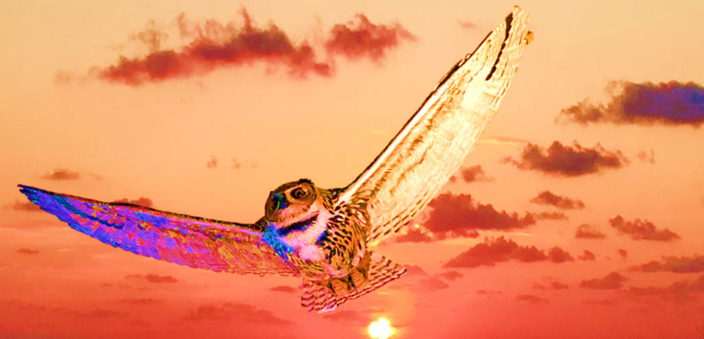 Churpi hopped back out of its whole in such a hurry. “You must be gathering for late winter. You can have my share.” Yarha surrendered the remaining of her nut to Churpi. “I’ll be back by morning with plenty more.” Yarha turned away to head home and noticed a large shadow hovering above the ground. She looked up, and there it was, it landed at the top of the “Tree of Life.” It was large, with gigantic wings. It had a round white and fluffy face, short low beak, long claws and gauging eyes. It was beautiful, sand coated covered in freckled spots. It was an owl, Yarha called it “The crown,” a phrase meaning a family of royalty.