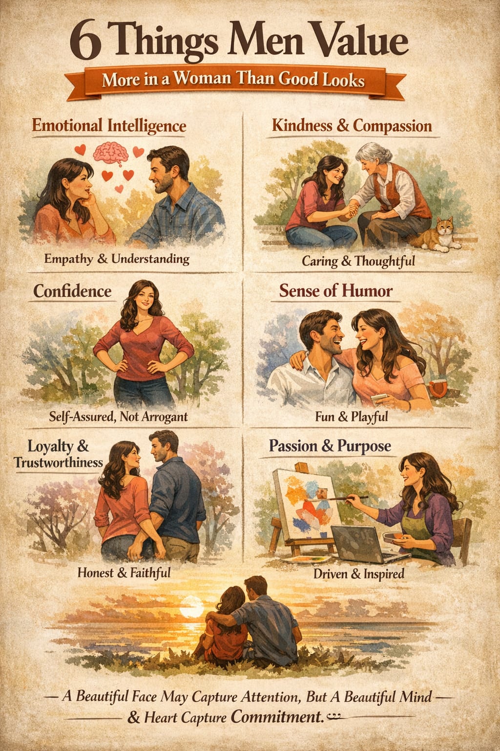 Physical attraction often gets most of the attention in conversations about relationships, but in reality, long-term connection is built on much deeper qualities. While good looks may catch someone’s eye, they rarely hold someone’s heart. Here are six things many men value in women even more than physical beauty.