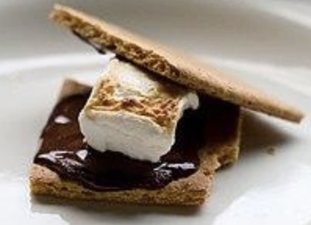 Grabbing the paper plate off of the table, I placed the hot marshmallows onto it. Letting them cool slightly, I grab hold of the Hershey’s bar and rip it open, snapping apart a few small squares of the milk chocolate. Carefully I insert a piece into the centre of the still warm marshmallow, letting the chocolate melt into the caramelized sugar. “Is it ready?”, Jack asked impatiently as he hopped from one foot to the other. “Almost! I just have to put the graham crackers together and then it’s all yours buddy” I replied. Grabbing hold of the box of graham crackers, I take out a fistfull and gently placed one on top and one on the bottom of each marshmallow. Putting the final touches on the s’mores, I passed one to Jack who grabbed at it enthusiastically before taking a giant bite. I grabbed mine as well and enjoyed the warm deliciousness of the summertime treat, soft and warm inside, filling my taste buds with its sweetness.