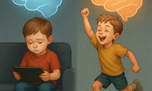 The Quiet Crisis: When Screens Replace Childhood A four-year-old boy sits silently on the couch, mesmerized by the glow of a colorful screen. No tantrums. No demands. No sound.
