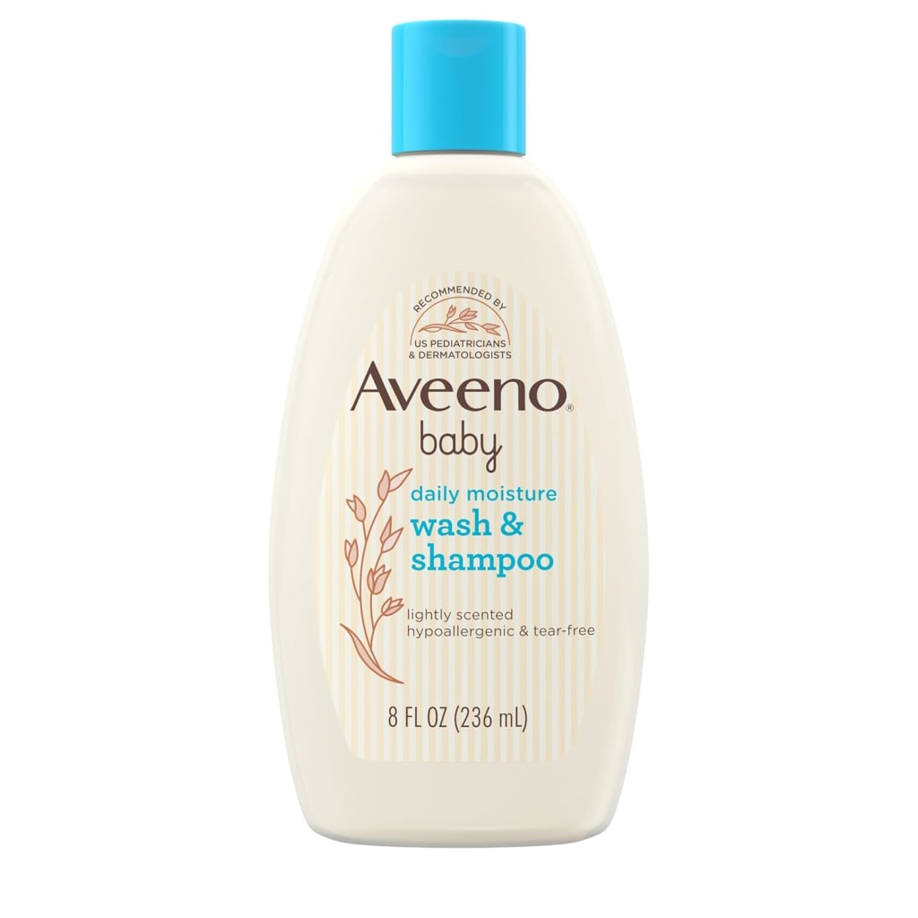 Gently cleanse your baby's skin and hair with Aveeno Baby Daily Moisture 2-in-1 Bath Wash & Shampoo, which features a nourishing formula that gently cleanses without drying. For babies with sensitive skin, this tear-free formula is safe for use on baby's delicate skin and hair. From a pediatrician-recommended brand, the baby body wash and shampoo formula contains natural oat extract, which is known to soothe and gently nourish delicate skin. The rich lathering formula rinses clean, leaving a light, fresh fragrance. This hypoallergenic baby wash and shampoo is free from soap, parabens, sulfates, phenoxyethanol and phthalates and can be used every day to help keep your baby's skin and hair soft and smooth.