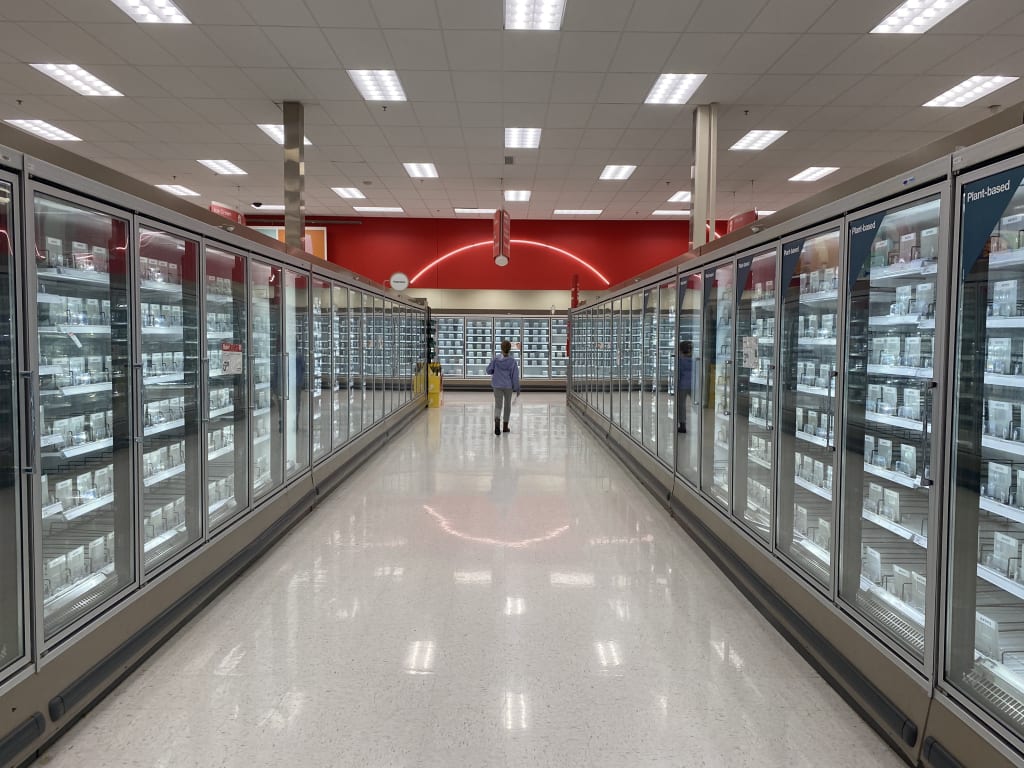By Friday, the snow had turned to slush, the aisles at the Super Target were cleaned out of any perishable item besides a small, pathetic pile of cabbage, some beat-up looking cucumbers and maybe a few cobs of corn. It reminded me of my crippled little backyard garden, my little baby salad greens, chard, kale, collards and brussels all destroyed by the 'freak' cold snap. My daughter's list has contained eggs, salad and milk. Walking through the empty aisles, masks dawned, and slightly traumatized from the ordeal, it felt like we were living in an apocalyptic future zone, where humans were living in scarcity and having to make-due and fight and/or suffer over limited and basic resources.