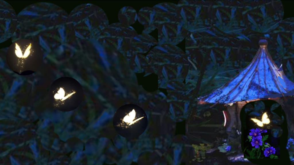 Where do butterflies go when the sun fades and the night takes over? I have heard it is said that when you wake up on a summer night, look out into the darkness until your eyes become like those of a cat. If you are very, very lucky, you will see ribbons of color ripple by, colors made by butterflies on their way to rest at a butterfly inn.