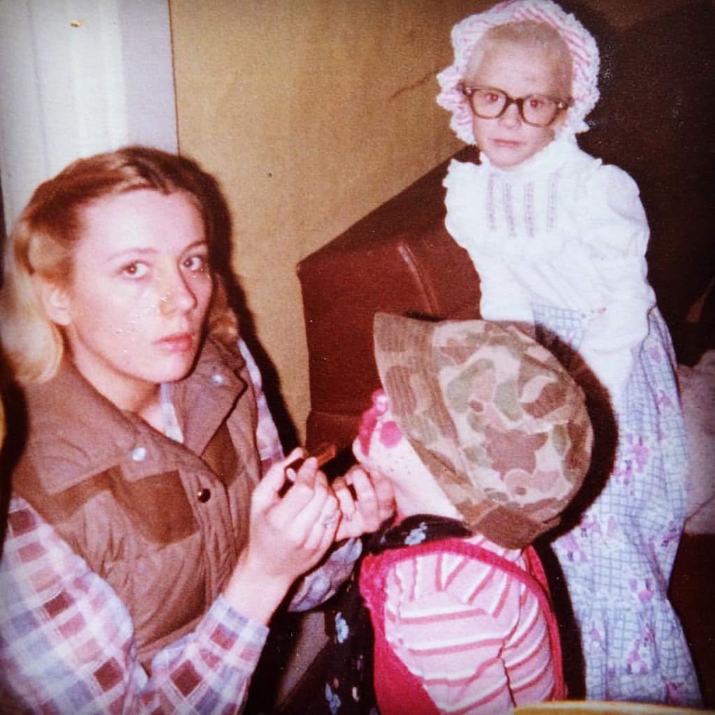 My mom’s voice from the door of the bedroom we share in my great grandmother’s house startles me. My cheeks are hot, and looking into the mirror of the dresser I’m standing in front of, I can see that they’re pink, my green eyes wide in a mix of fear and confusion. On top of the dresser is a stack of papers, typed carefully by my mother on her old typewriter. “Willie the Fisherman’s Parrot” by Cathy *** ******, it’s titled. It’s my mom’s book in progress, and while at the age of five years old, I can read it quite easily, it isn’t what I was doing.