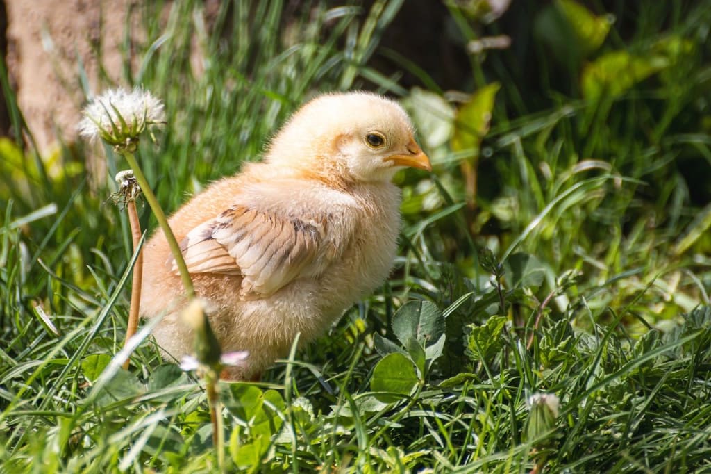 Once upon a time, in a lush green meadow nestled between rolling hills, there lived a little chick named Charlie. Charlie was a curious and adventurous young bird, always eager to explore the world beyond the safety of the nest. One sunny morning, Charlie and his mother, Henrietta, set out with their flock on a journey to find food.