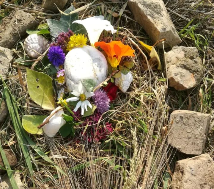 When she came back from school she wanted to see the grave. We showed her and she cried softly some more. She spoke to him as she placed other stones around the bright white one. For the following few days she would get back from school and say, “I’m just going to see Beanie,” and go out back with flowers and green leaves. Initially I could hear her sobbing and saying the same sorts of things she’d said the first time, but after a couple of days she started just quietly telling him about her day, who she’d seen and what she’d learned, as she placed yet more flowers and stones on and around the tiny mound.