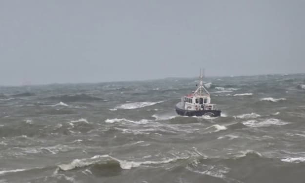 The wind was howling as father steered the ship.