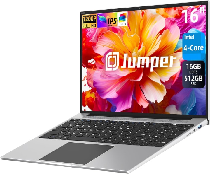 - **Jumper 16-inch Laptop**: Suitable for everyday tasks with its Intel Celeron processor and 8GB of RAM.