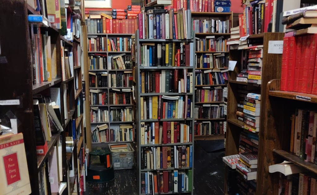 “Hello,” I called. No answer. Slight shuffling noises, punctuated by percussive clacks, wafted in from the warren of aisles and dead ends that I knew lay beyond the front room. I stepped through the doorway, trying to trace the source of the sounds, rounding a corner, past a shelf filled with old ‘70s Erich Segal bestsellers and a teetering pillar of National Geographics, only to find myself at a crossroads, then another, and another. “Hello” I called again. I was deep inside the building now, the passages narrower, the air thick with the must of ancient volumes, the light so dim that I had to feel my way along the shelves with my free hand. I was nearly at the point of heading back—surely I wasn’t supposed to be here—when I turned one more corner and finally arrived.