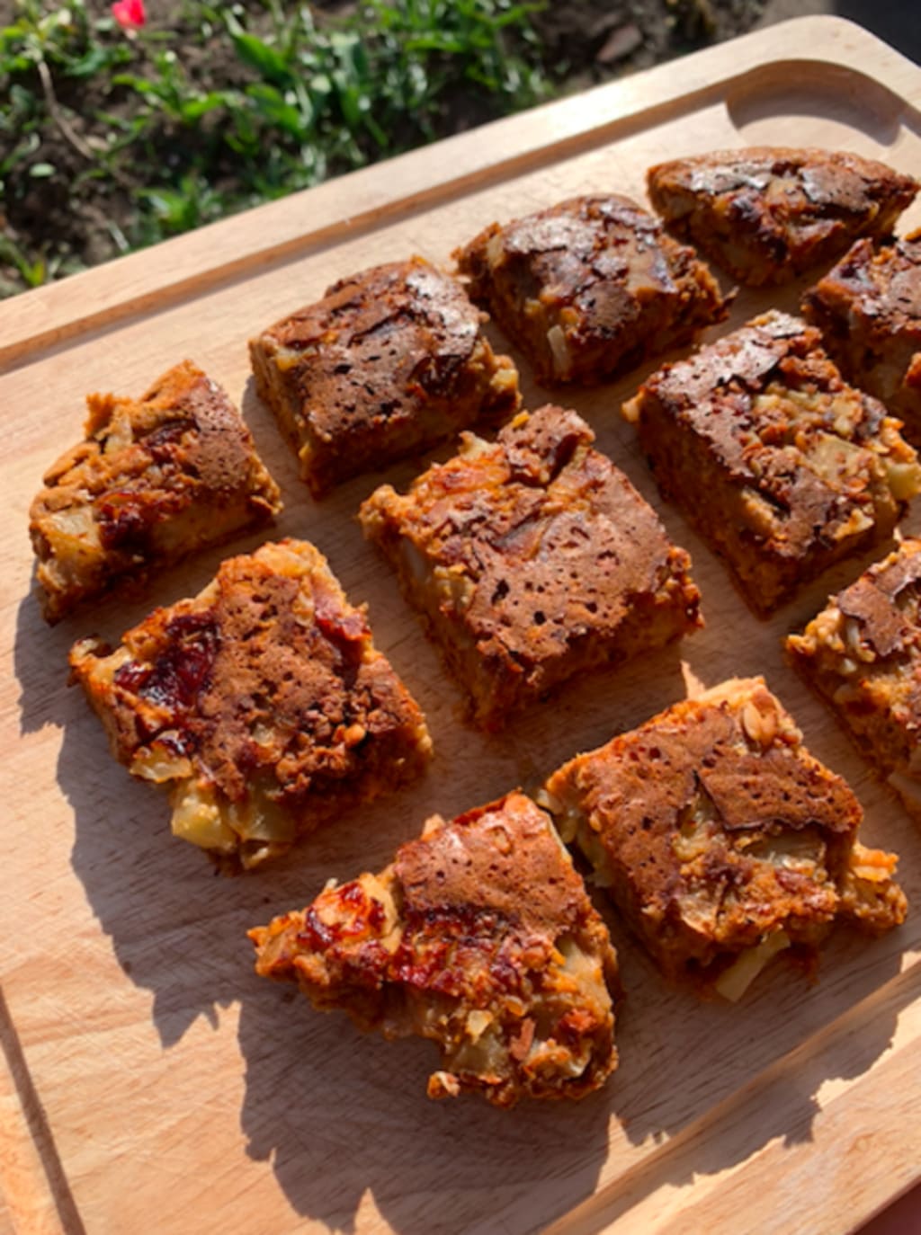 In a baking tin, layer aluminum paper then drizzle almond butter and the remaining apples and almonds. Pour the mix into the tin and do NOT stir.
