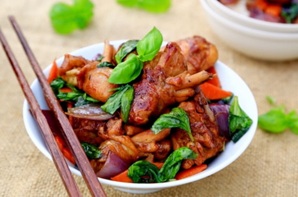 This sauce is rich, mellow and thick, the color is red and bright, the chicken is fresh and tender and smooth, and the last nine layers of the tower is added more finishing touch, the feeling of magic. The nine-story tower is an essential element of Taiwan three-cup chicken.