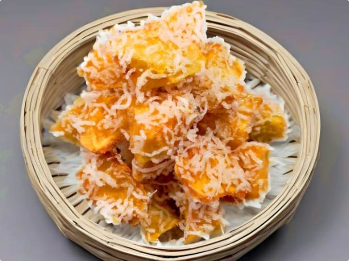 Method: Peel and cube sweet potatoes, then steam until tender. Lightly coat with starch and deep-fry until golden and crispy. Separately, fry a handful of Longkou vermicelli until puffed, then crush into flakes. In a pan, simmer water and sugar until fine bubbles form, then toss in the fried sweet potatoes to coat evenly with the syrup. Add the crushed vermicelli, mix well, and serve. Each bite delivers a satisfying contrast of crispy exterior and soft, sweet interior—a celebration of autumn’s abundance.