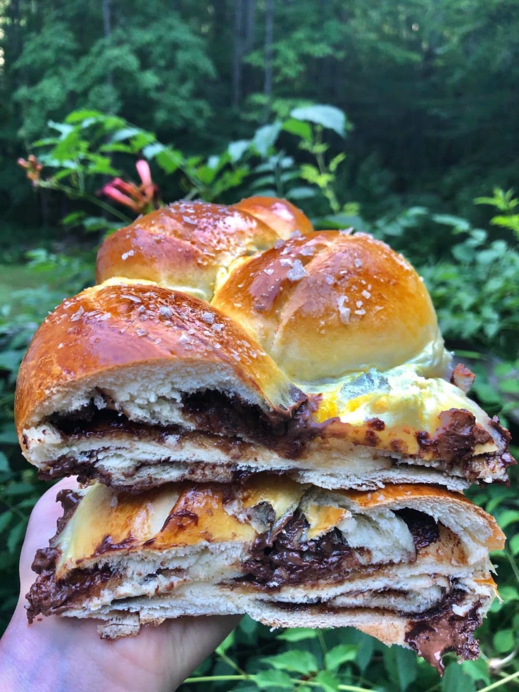 Challah is a staple Jewish bread, usually reserved for Friday night Shabbat dinners. While I never made challah growing up, I fell in love with it during the COVID-19 pandemic. Kneading and braiding the dough gave me a sense of peace and satisfaction. There's no better feeling than taking a fragrant, golden-brown bread from the oven and pulling it apart to reveal a gooey, swirled chocolate center.
