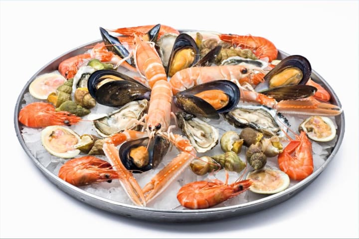 Plateau de fruits de mer is a traditional French dish consisting of various seafood on a platter over crushed ice. The dish is prepared with a variety of shellfish like shrimps, mussels, lobsters, crabs, clams, and oysters which can be cooked or raw.