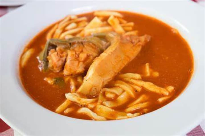 Fis paprikas or hal paprikas is a traditional fish stew. It is cooked in a big cauldron over an open fire. The spicy fish stew is prepared with freshwater fish like catfish, starlet, pike, and carp. Ground red paprika gives the stew its color and flavor. The stew is served with homemade noodles.