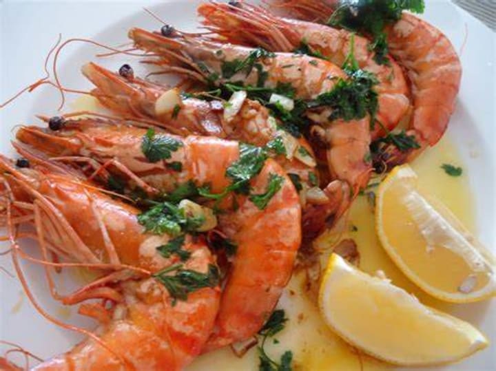 Gambas à la plancha is a traditional Spanish tapa dish. It consists of whole shrimp seasoned with salt and grilled in an iron skillet over high heat. Lemon or lime juice is spritzed on top and black pepper can be added.