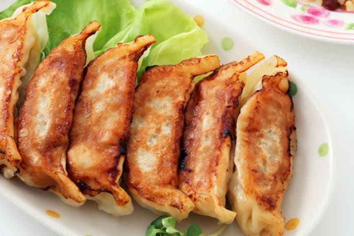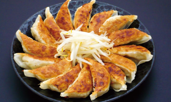Hamamatsu is a popular variety of Japanese gyoza. It is filled with pork, onions, cabbage, and seasonings. The prepared gyoza are fried so that the crispy bottoms connect all the gyoza.