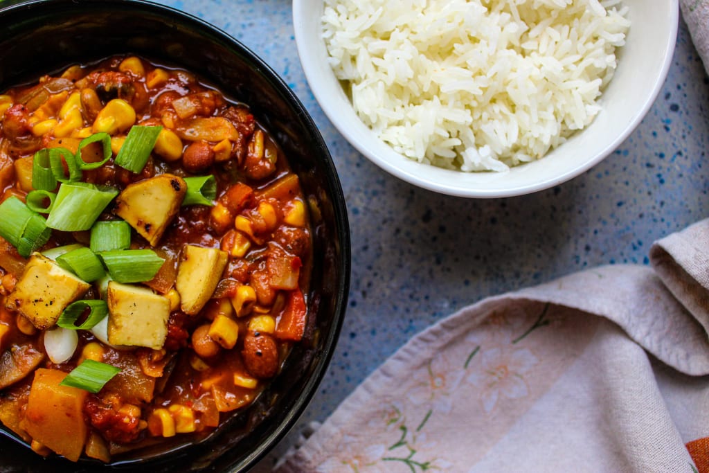I also prepare some jasmine rice in my rice cooker, but you can totally eat the chilli without the rice, or you can swap it with some tortillas or even a bread.