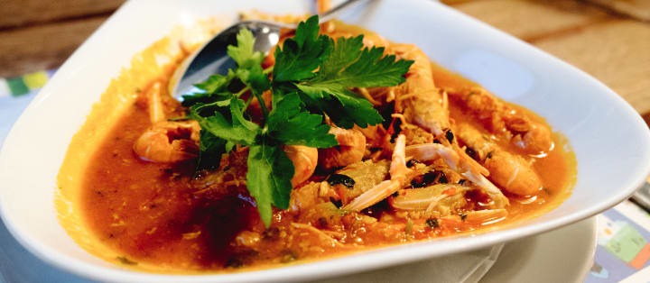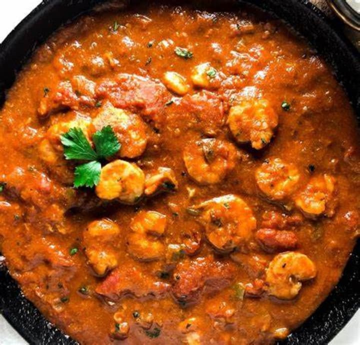 Shrimp creole is a classic seafood dish originating in southern Louisiana. The dish is prepared with gulf shrimp simmered in a tomato sauce. The sauce is made with tomatoes, bell peppers, onions, celery, and hot peppers.