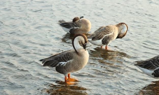 On the fourth morning, my sister and I went to school. We were wearing cotton-padded clothes and pants, and our father's new boots. The snow was knee-deep, and we walked cautiously like two moving snails.
