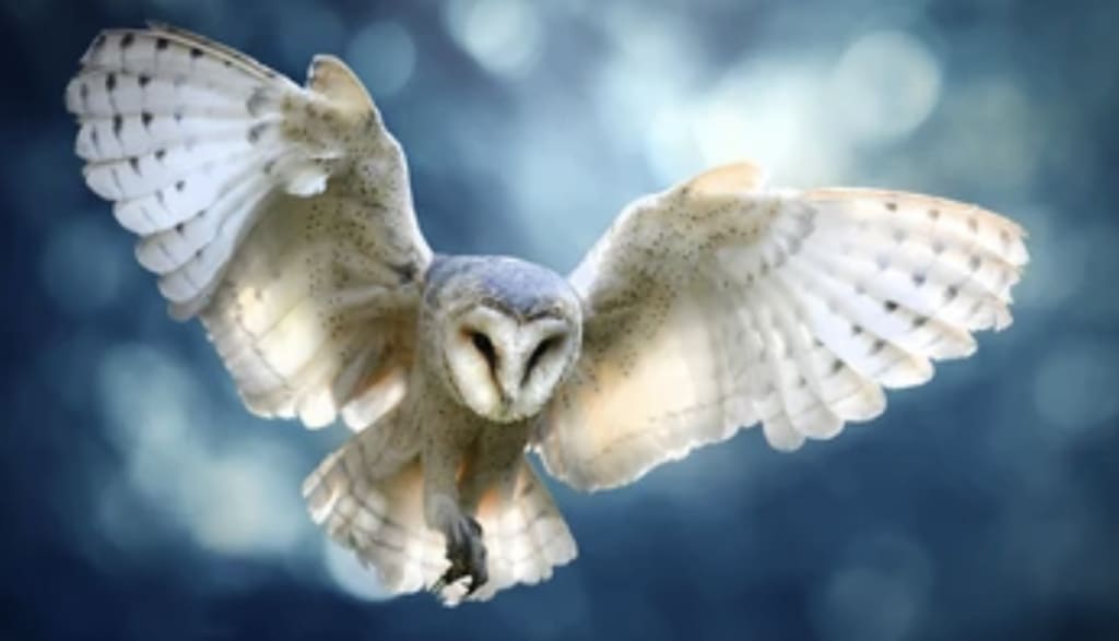 “Hello there,” he said, his voice chipper and bright. His two small legs had clawed feet, leading up to a white feathered chest, and a heart outlined face of a barn owl. His eyes blinked slowly, curiously as it observed the intruder.