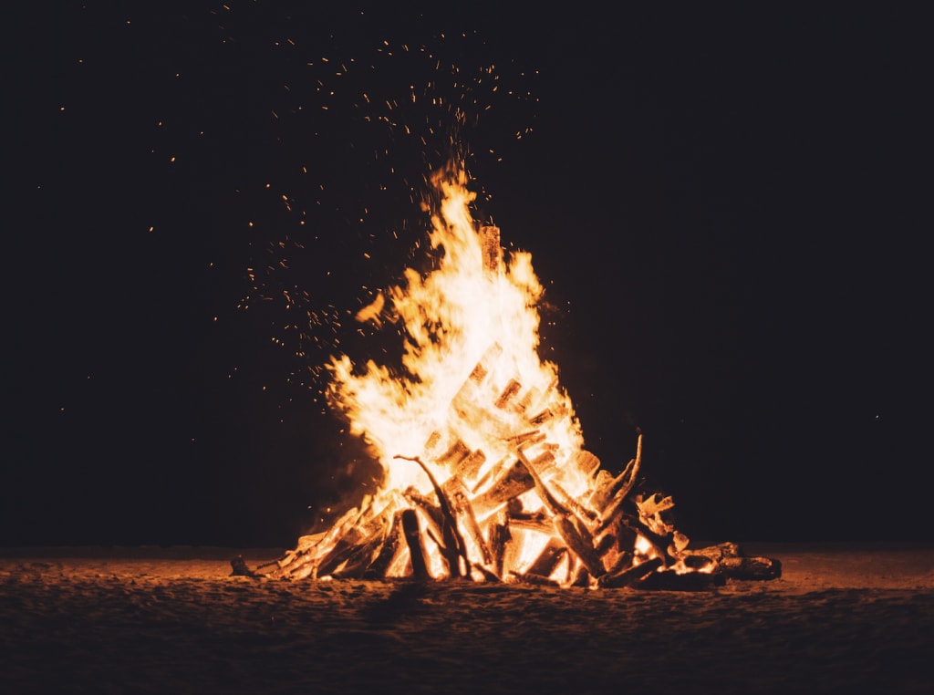 It was small, color indiscernible in the dim light. It landed on the arm of one of the younger children. As she looked to see what it was, it was gone, but looking up, she saw another one. And then another one. Soon the whole sky was full of them. One by one, the attention of the children left the old man and fixated on the new falling flakes, whatever they might be, silhouetted against the light of the fire.