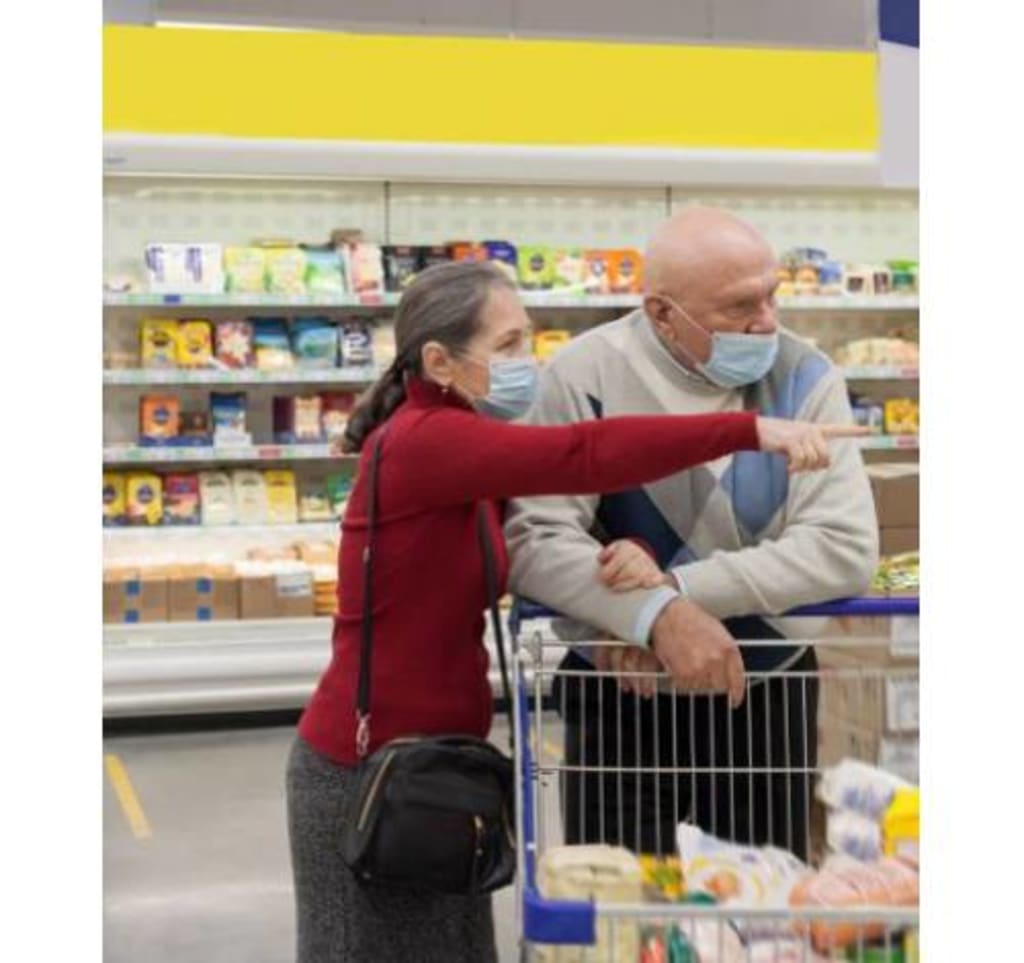 It is Irene and Bill’s once-a-week trip out of the house, due to the lockdown. They’re not supposed to shop together, but Bill is Irene’s support person. Bill and Irene watch many mask-less people stroll by, people wearing masks limping off their ears and mouths, or people running free and happy; meanwhile, people wearing the PPE correctly are walking faster, weaving away from and dodging people as they pass by.