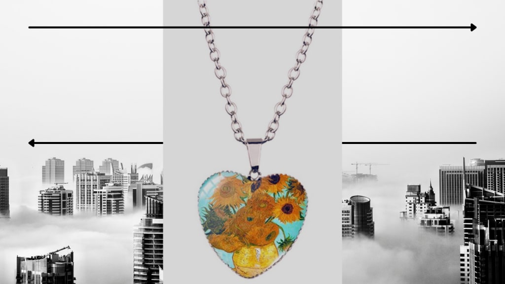 The audible shuffling of a record scratch was all I could hear. Bob Dylan’s voice begins coming through, like a raspy, old-timey radio in an apocalyptic movie. The same lyrics play over and over. In spite of the static, I understand them clearly. His words strike a chord I can’t explain as he sings, “There’s no locket. No picture of any mother I would pocket. Unless it’s been done by Van Gogh.” I clutched the dirty, heart-shaped necklace, the sunflowers on the edges barely visible under the layers of the former Earth. I never remember wanting it, and yet, I was always there- just like them. It held a familiar fear and comfort- just like them. I thought I screamed, but the only thing that came out was another cloud of dust. I covered my ears, but the words of the song were too loud. It was inside my head now, just like them. I begged for silence again and, for a moment, they allowed it.