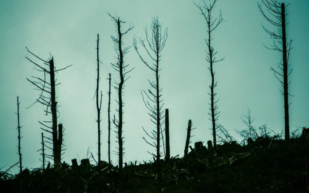 My father had told me that the silence was wrong. The forest was once full of life, he had said, and that life would tell travelers when the sun was about to rise. He talked to me about how birds and insects would begin to sing to greet the new day, and the vitality the sun brought with it. Walking down the road with the remains of the silent forest spread out for miles on both sides of me, I can’t help but chuckle at the thought- the sheer absurdity of any living thing greeting their slow death with a cheerful song. Then again, here I am laughing at my own morbid thoughts on a deserted highway. Maybe the animals weren’t wrong after all.