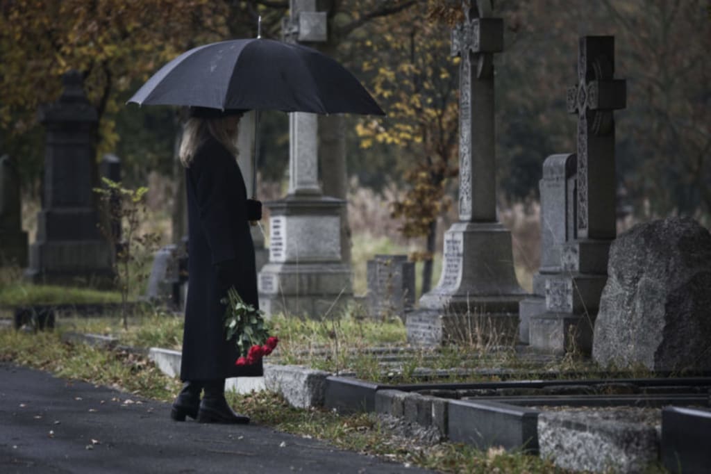 The sky was grey and somber as I stood at the cemetery, surrounded by rows of graves. The damp earth beneath my feet seemed to mirror the heaviness in my heart, and the cold wind that blew across my face felt like a cruel reminder of my loss.