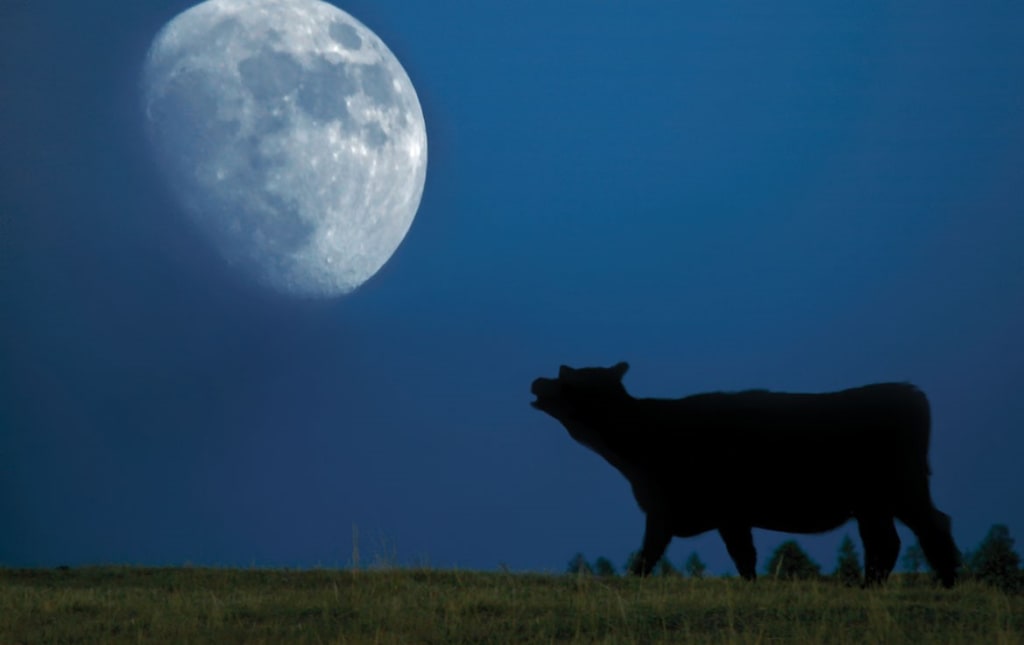 At last, after more stumbling and bickering, they reached what they were aiming for, the wooden fence of the cow pasture. Tonight’s goal, take a video of successfully tipping a cow. The twins had arrived just in time. The cold glow of moonlight was just beginning to appear on the horizon. In minutes the large, full moon would be bathing the ground with light. Carson clambered onto the fence, the wood creaking under his weight. He paused for a moment at the top, straddling the top beam with his legs. He surveyed the enclosure and spied dozens of dark silhouettes scattered around, their oversized forms remained motionless, appearing like stone monuments on the field of some famous battle from centuries past. Carson swung his other leg around and dropped to the ground on the opposite side of the fence into the pasture. His feet sunk into the earth when he landed, surprising him with how soft it was when it had felt so firm on the previous side. But then a familiar and repulsive scent wafted up from his toes. He gagged and put his hand over his nose. A thud behind him informed him that Grant had made it over.