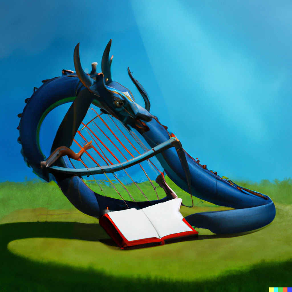 As a mercy to our poor protagonist, I will refrain from describing his attempts at painting; suffice to say that the palette has never been so easily comparable to an instrument of torture. As a mercy to my audience, I will skip past even a cursory report on the failed attempts at sculpting; certainly, any dragon would be hard-pressed to have seen itself represented in the artless lumps of rock he left in his wake. And as a mercy to myself, I won’t dare to utter so much as a verse of his horrid perversions of poetry that were born against their will and fortunate enough to die shortly thereafter. But then came music. His mother had an old lyre that she used to play back when she was still in the grips of youth, and it seemed as likely an instrument as any to wring out the truth that he sought. His first forays were mediocre at best, but they lacked the ghastly reactions that had suffocated his prior attempts at capital-A Art. Encouraging, but there was still a long way to go.