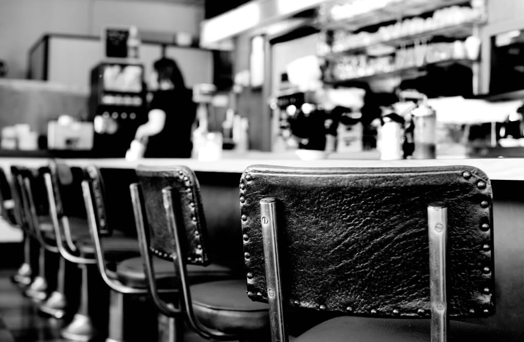 I can’t identify a single odor in the diner, each is fouler than the last. The air feels heavy and dirty and it’s loud with clanking and metal scratching against some sort of flat pottery.