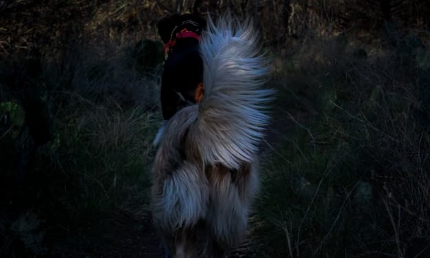 On his way back, the path to get home was becoming unclear as the sun met the horizon. The man continued to move, not exactly knowing where he was heading; but he had faith he would find his way back one way or another. It took only one wrong turn to change this. A crunching sound was becoming louder the more he walked in the same direction. Curiously, the man followed the sound until he came out of the dense forest and moved to an open field. Before him, a giant beast devoured an animal. Frozen in his tracks, the man gasped and heaved at the horrid sight of the carcass of its prey being viciously torn to shreds. The wolf heeded the presence of the man and turned to face him. Its golden eyes were predatory and its snout was painted a bright scarlet red. The man felt shivers down his spine as the wolf inched closer, licking the blood clean. This was the first moment in history men had felt fear.