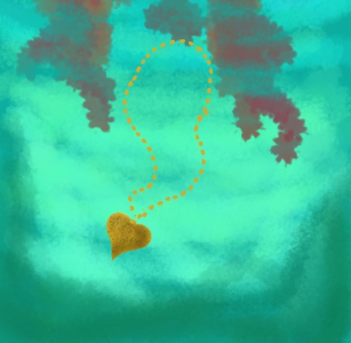 A heart-shaped locket floating slowly on the tide toward the ocean floor. I reach my hand to the glass wishing that I could reach out and grab it as tears flow down my cheeks.